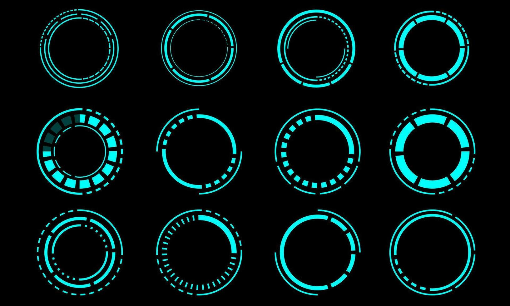 Set of sci fi blue circle user interface elements technology futuristic design modern creative on black background vector Pro Vector