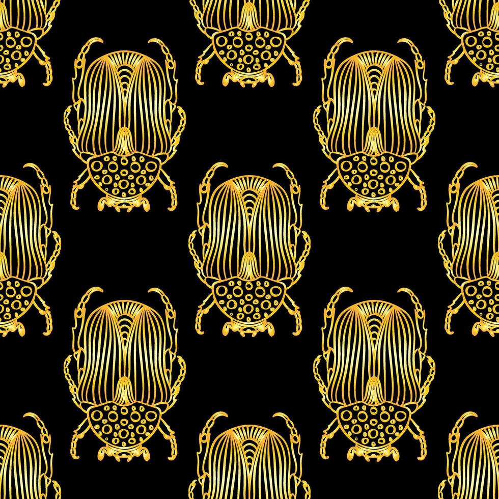 Golden beetles seamless pattern. Bohemian pattern with bugs Pro Vector and Pro SVG