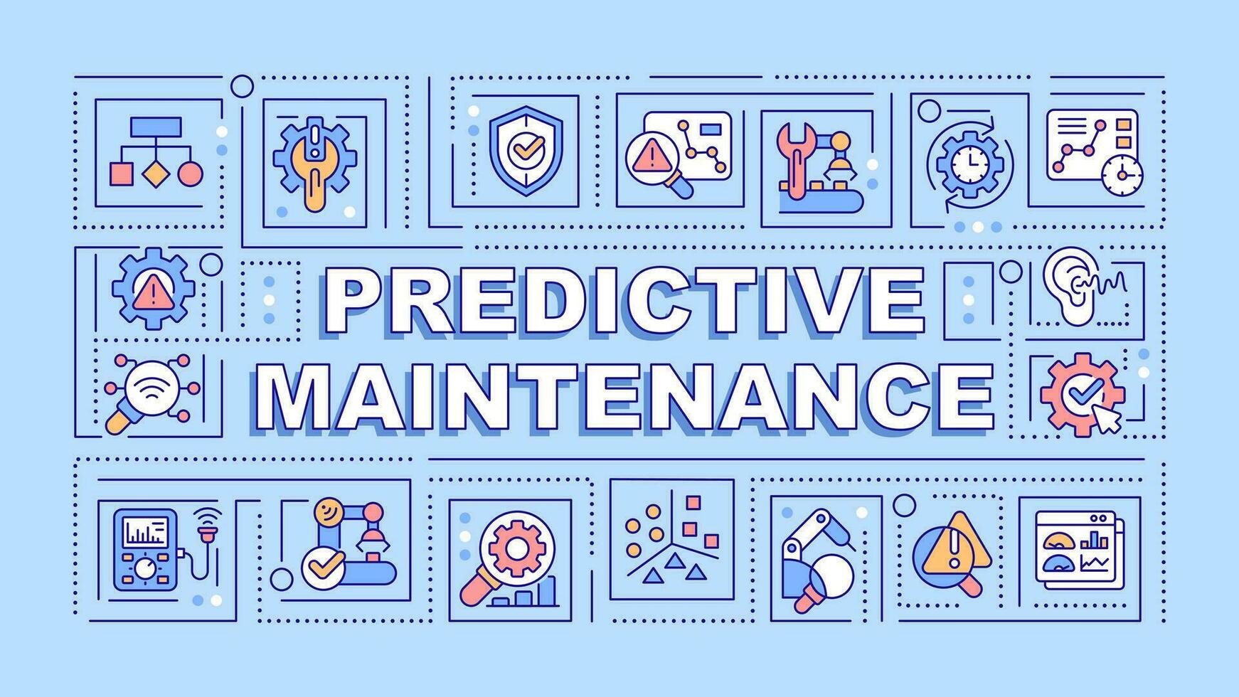 Predictive maintenance text with various thin linear icons concept on blue monochromatic background, editable 2D vector illustration. Pro Vector