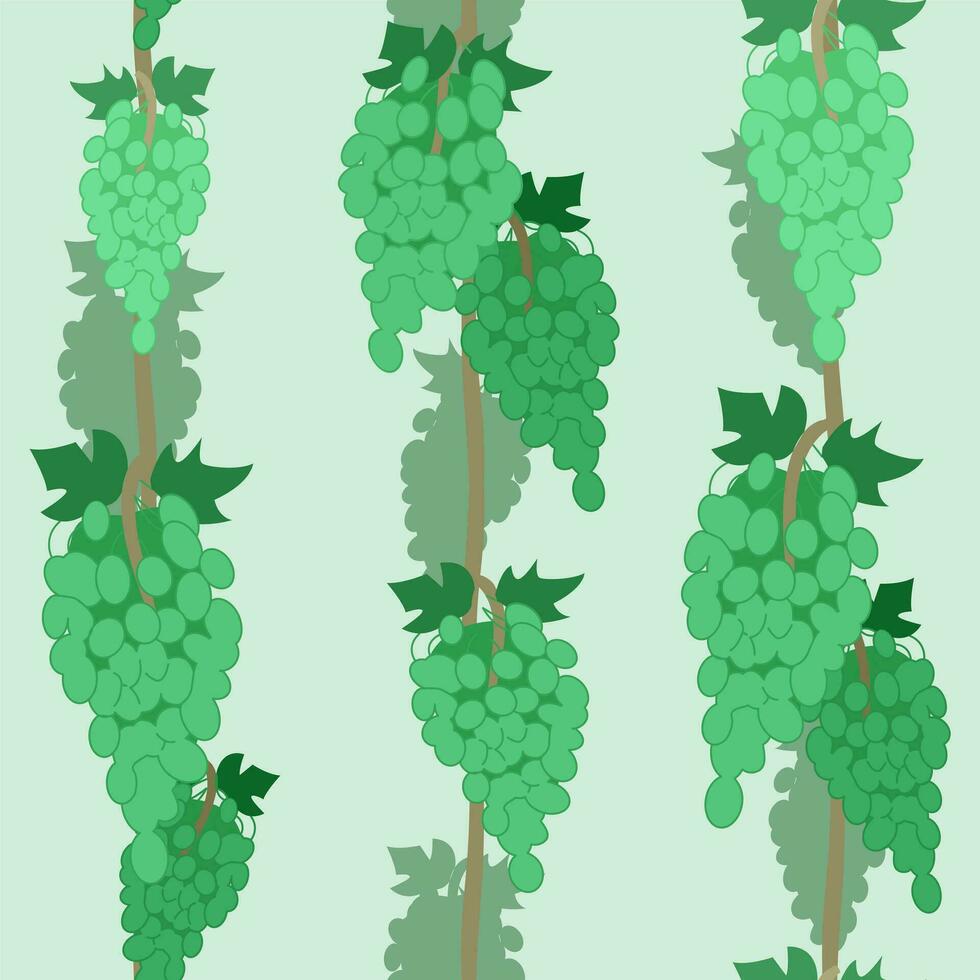 Pattern with green grapes. Background with vines on a green background. Seamless vector pattern Pro Vector