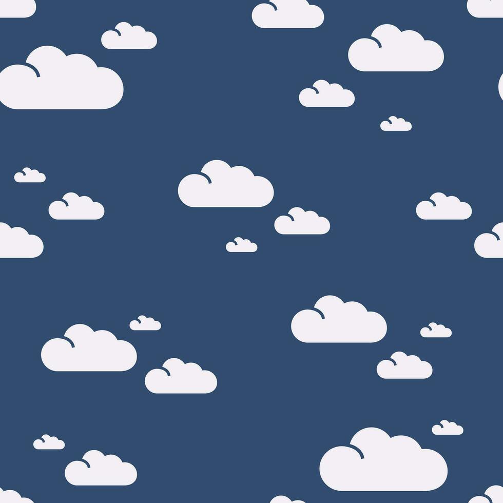 Seamless vector simple cloud pattern in a chaotic order on a dark blue background Pro Vector