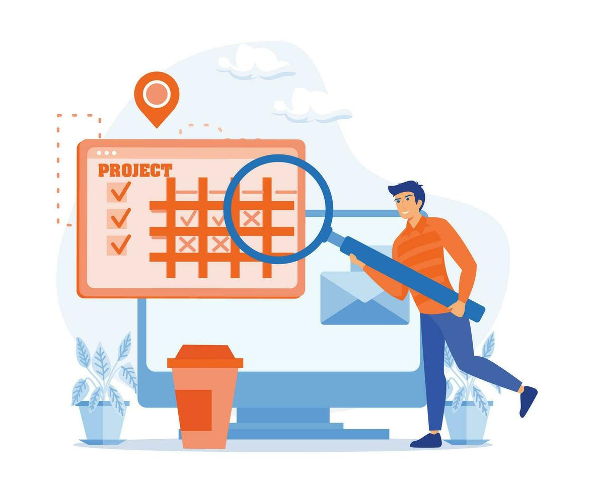 Project monitoring concept. Planning, development and programming of successful business projects. flat vector modern illustration Pro Vector