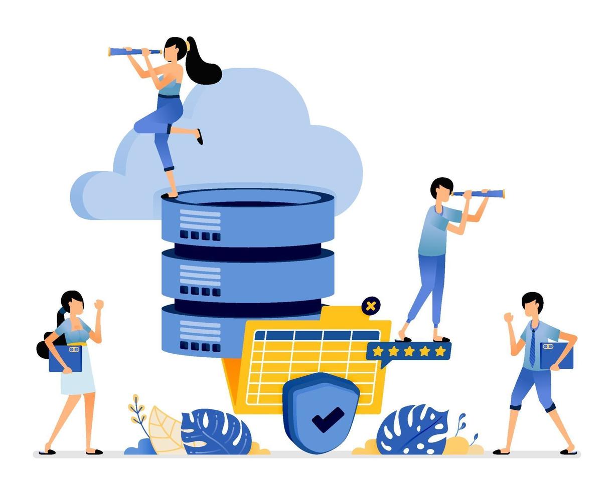 cloud storage connected to database system with best and safest level vector