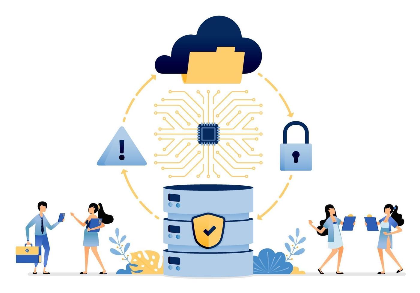security flow and protection of data files stored in cloud services vector