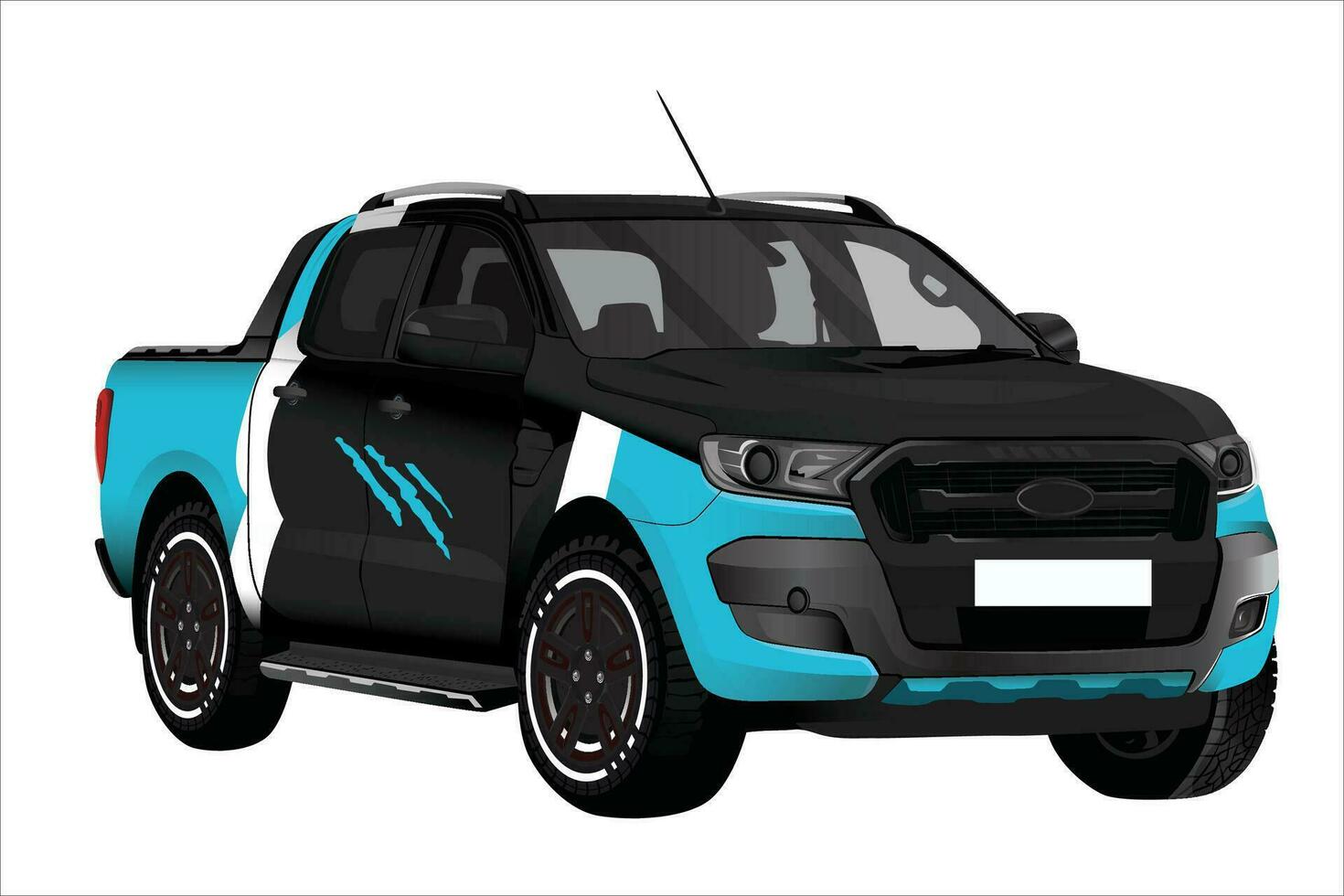Isolated Realistic Vector black 4WD car, 3d perspective with transparency gradient and front, side view.