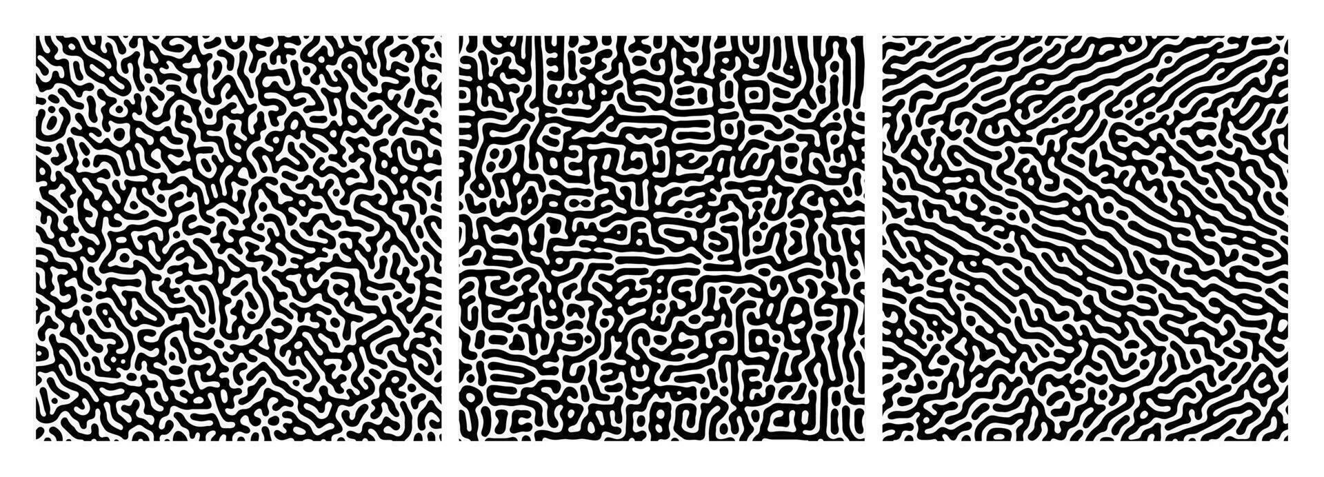 Set of three turing reaction gradient backgrounds. Abstract diffusion pattern with chaotic shapes. Vector illustration. Pro Vector