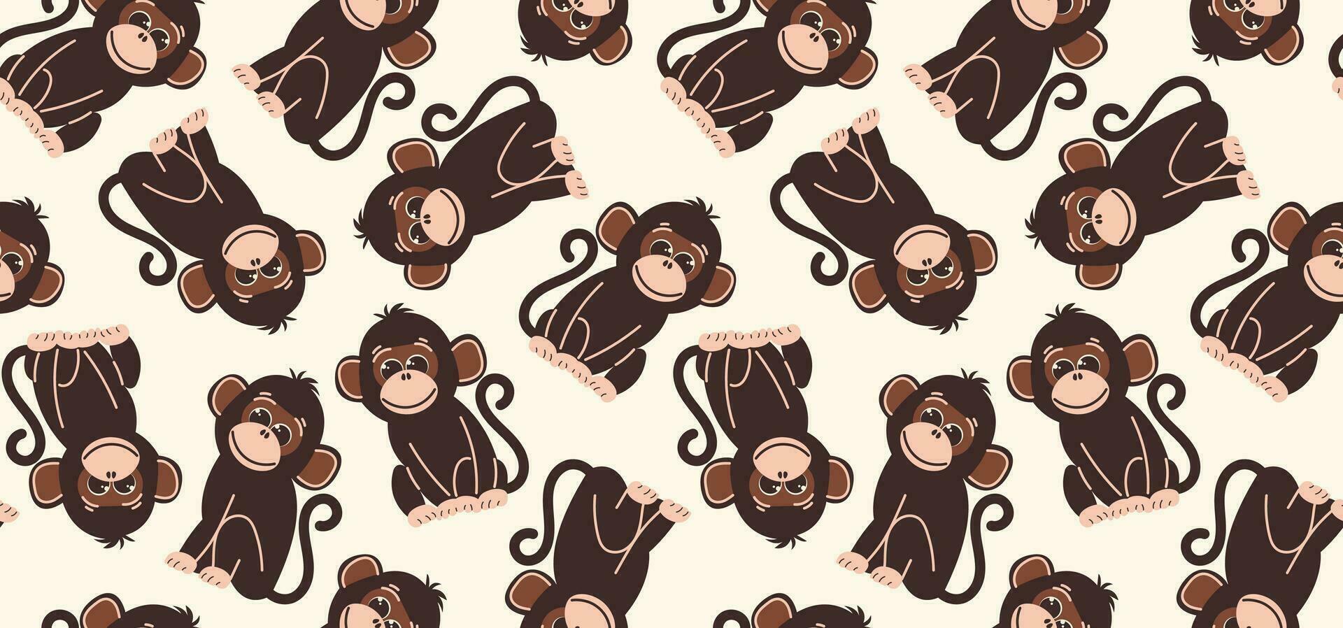 Seamless pattern with monkeys in flat style. Vector background with cute monkey characters. Abstract background. Pro Vector