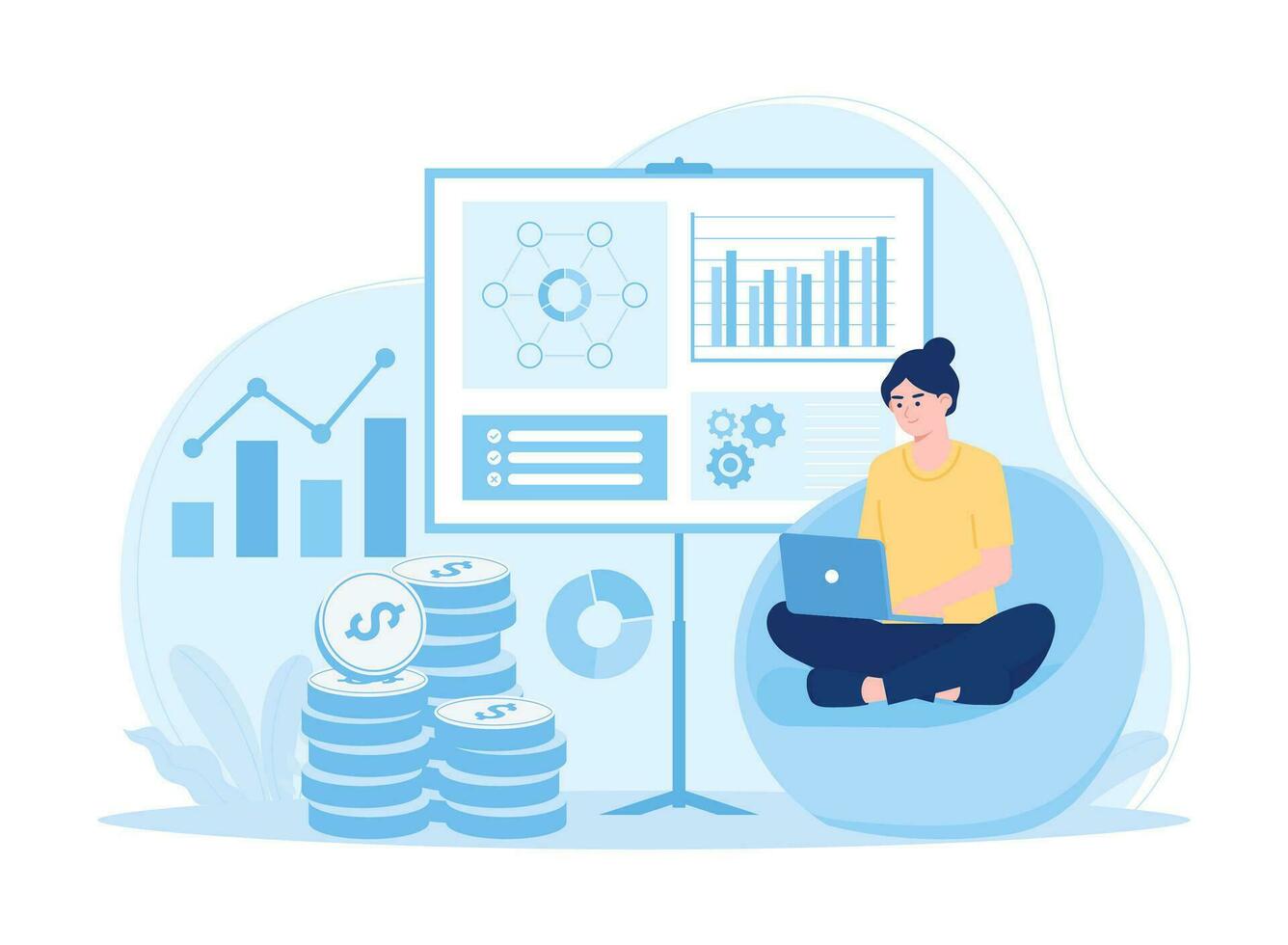 A woman analyzes an improvement graph concept flat illustration Pro Vector