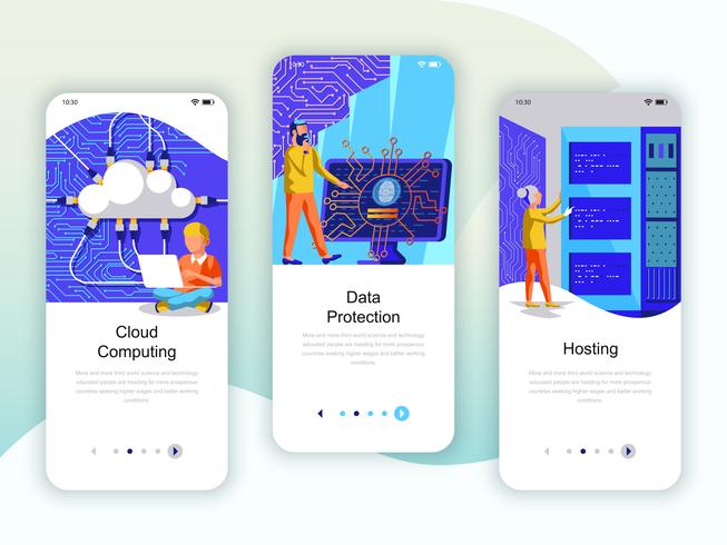 Set of onboarding screens user interface kit for Cloud Computing, Protection Pro Vector