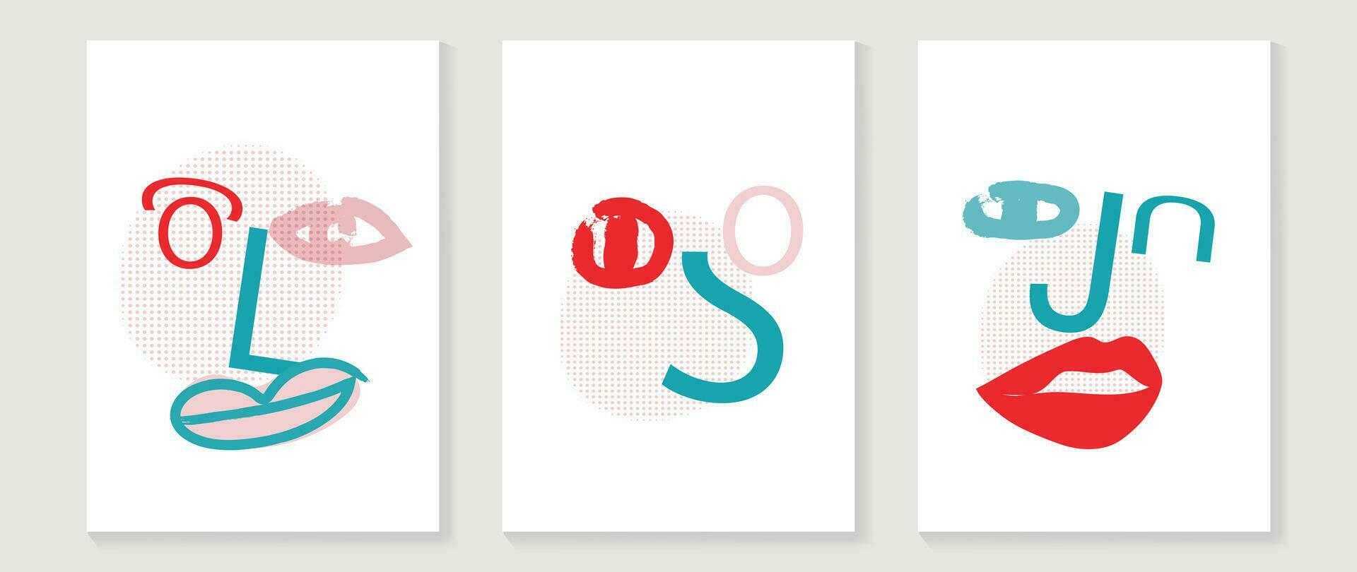 Surreal faces abstract art background vector. Portrait abstract face one line drawing with modern continuous line art and abstract geometric art style. Good for poster, wall art, print, cover design. Pro Vector