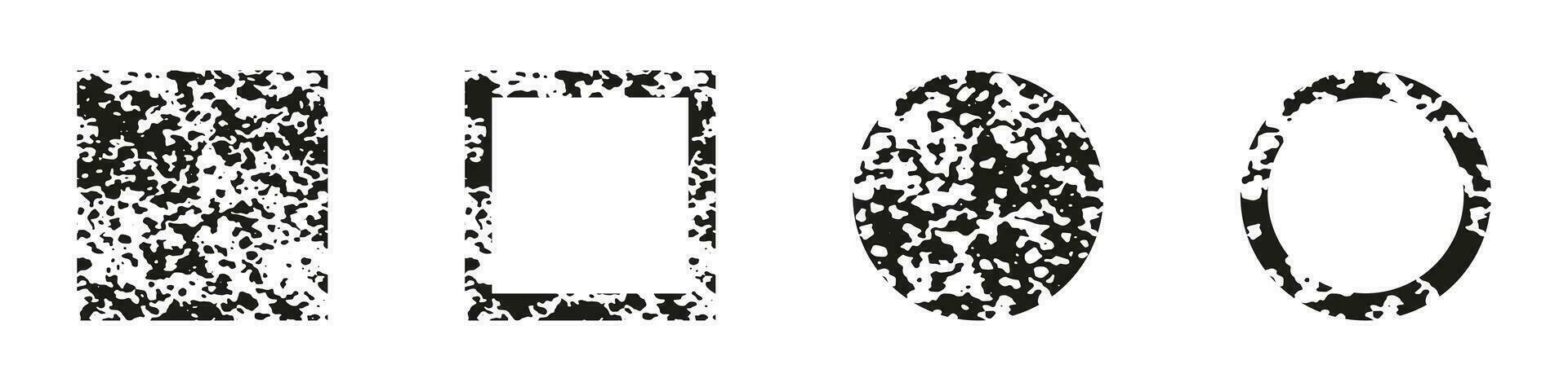 Square and Circle Frame Set. Grunge Texture Splatter Border, Dirty Ink Rough Pattern. Black Geometric Form Collection. Messy Abstract Design Element. Isolated Vector Illustration. Pro Vector