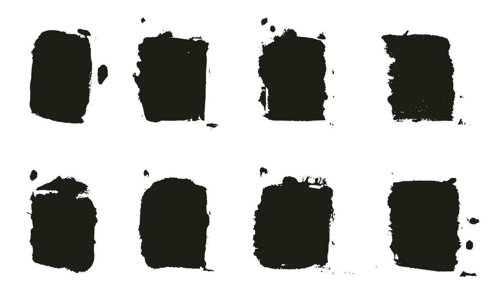 Brush Ink in Square Shape Collection. Rectangle Paintbrush Rough Texture. Black Grunge Template Background. Brushstroke with Abstract Border. Abstract Graphic Element. Isolated Vector Illustration. Pro Vector