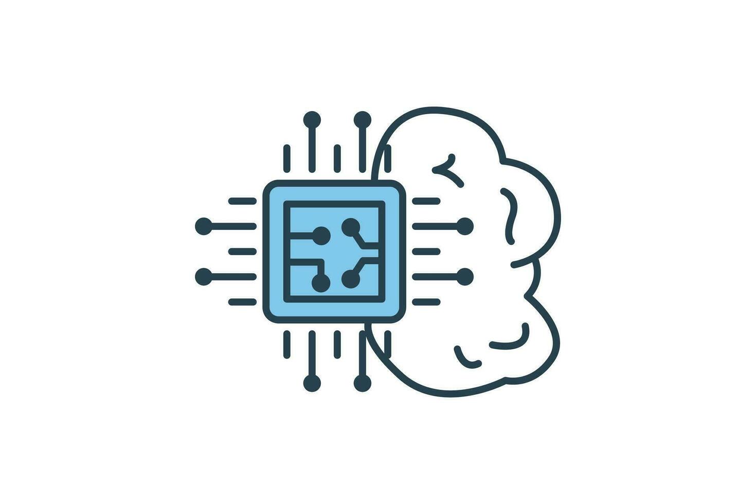 artificial intelligence icon. brain and cpu. icon related to device, artificial intelligence. flat line icon style. simple vector design editable