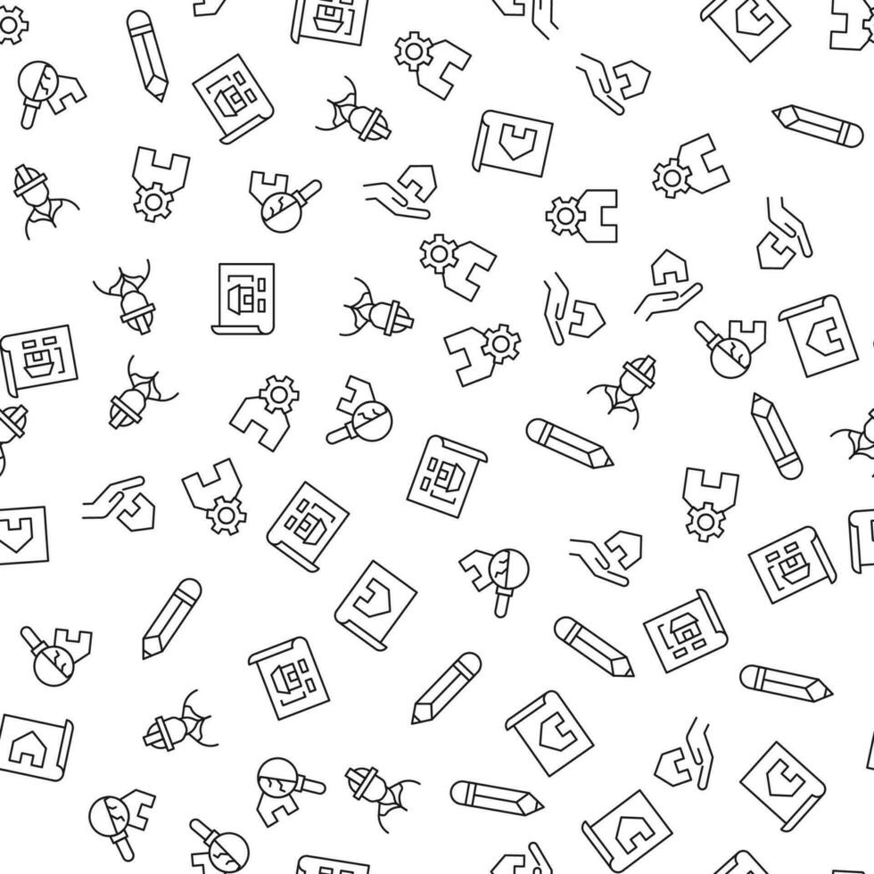 Pencil, Gear over House, Builder, Magnifying glass by House Seamless vector pattern made of line icons. Suitable for web wrapping, printing, web sites, apps Pro Vector