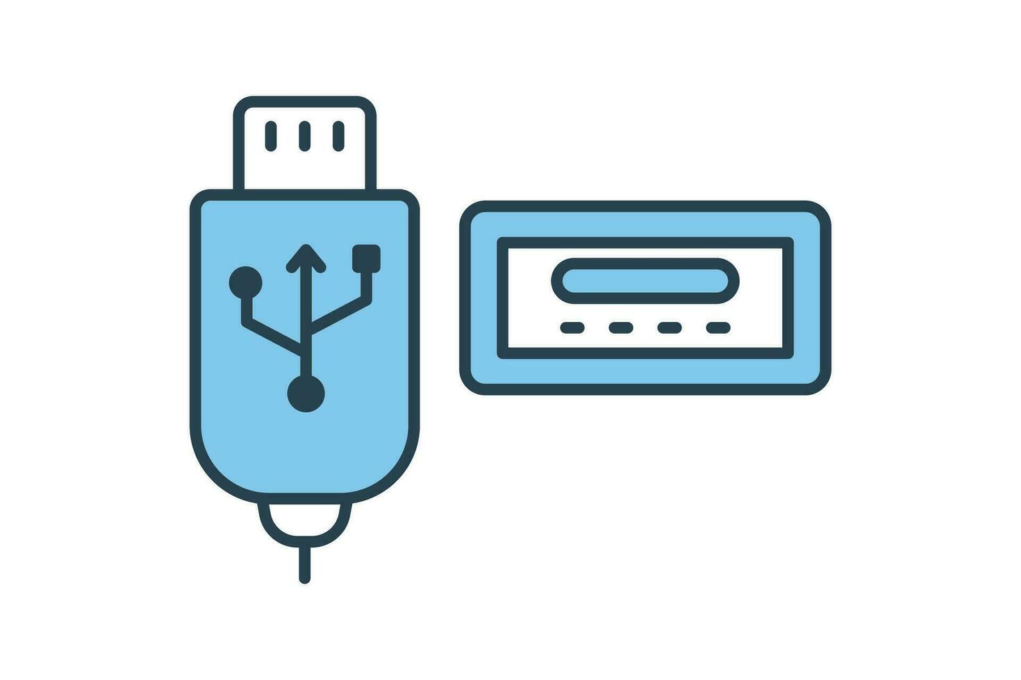 usb port icon. icon related to device, computer technology. flat line icon style. simple vector design editable Pro Vector