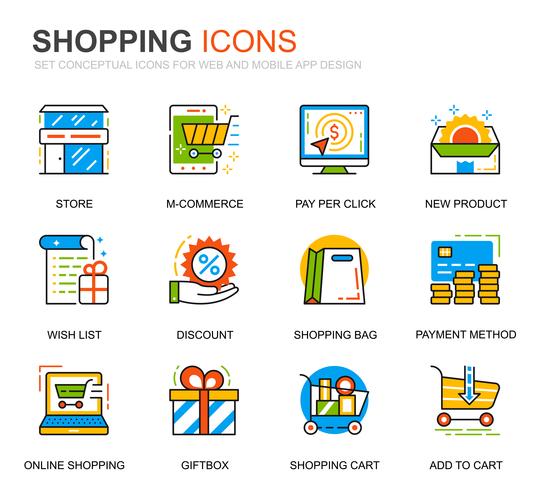 Simple Set Shopping and E-Commerce Line Icons for Website and Mobile Apps Pro Vector