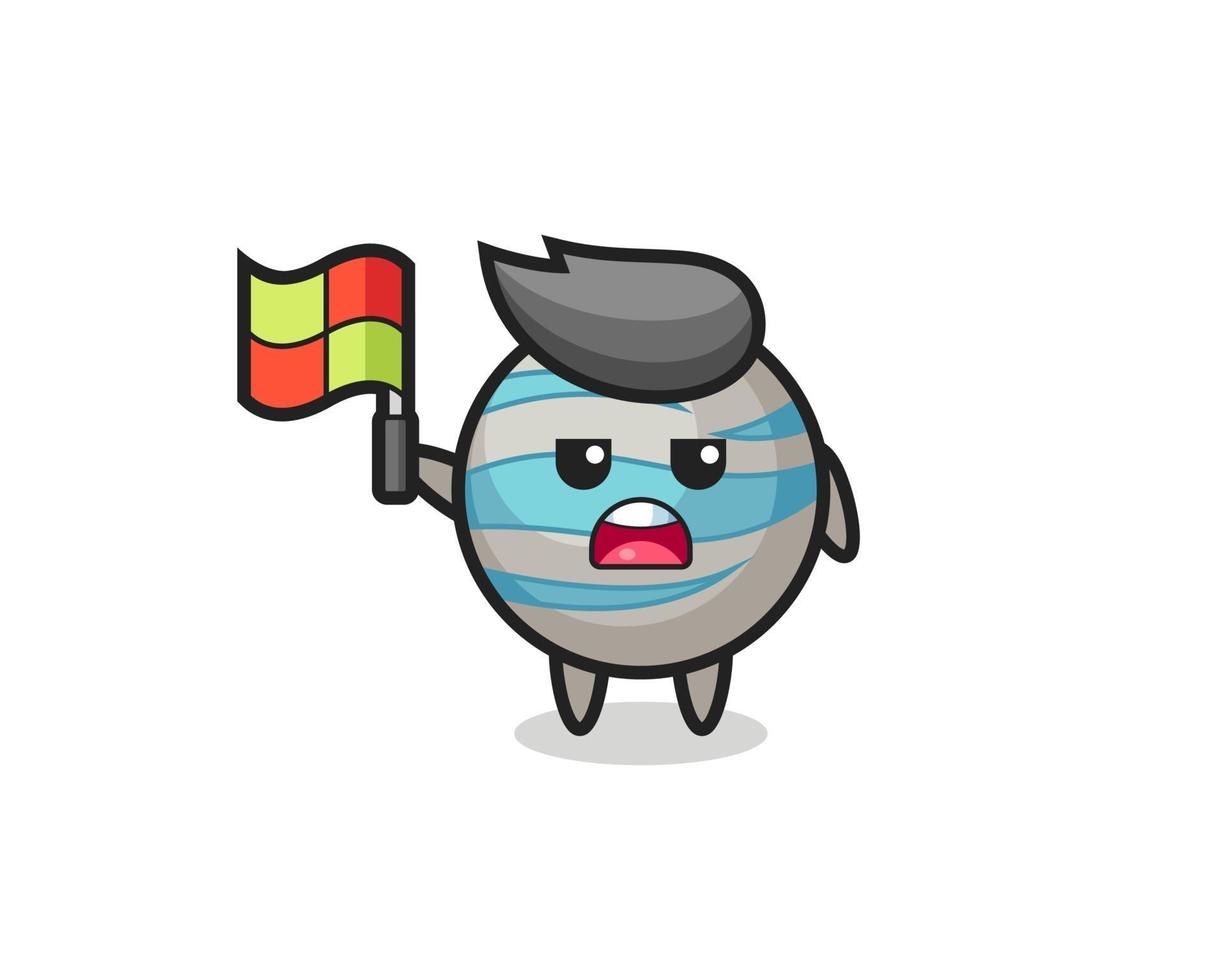 planet character as line judge putting the flag up vector