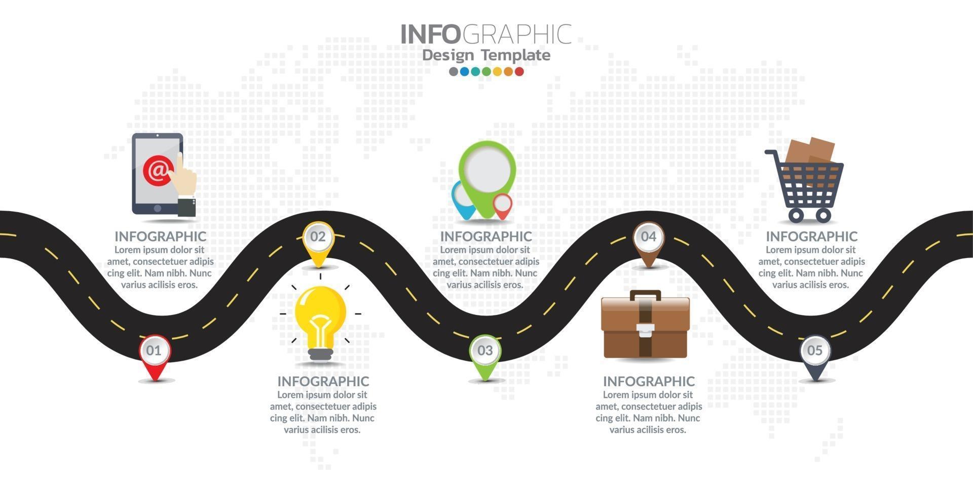Infographics timeline design template with icons and text label. vector