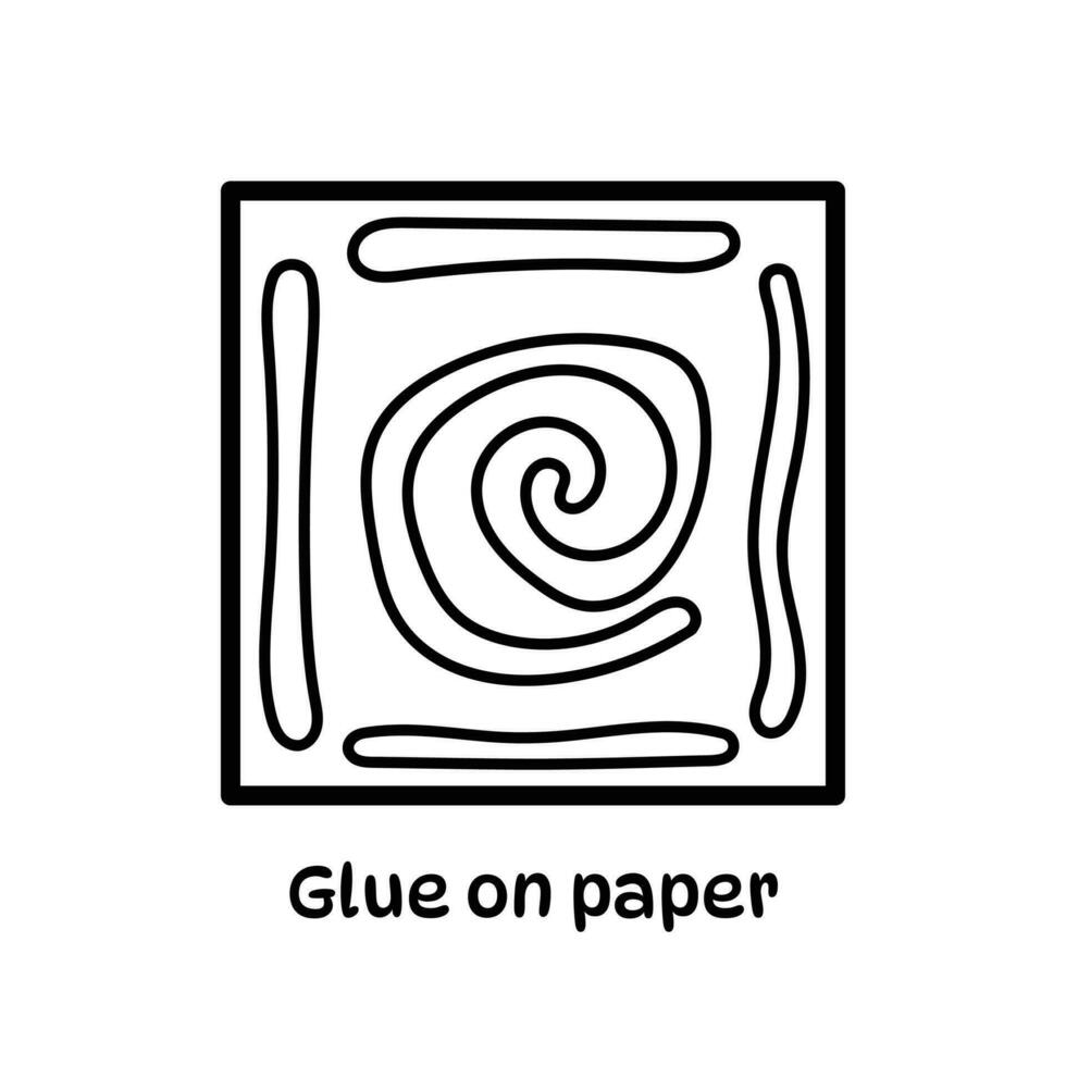 Glue liquid pattern location apllied on square paper vector icon illustration outline isolated on square white background. Simple flat cartoon minimalist art styled drawing.