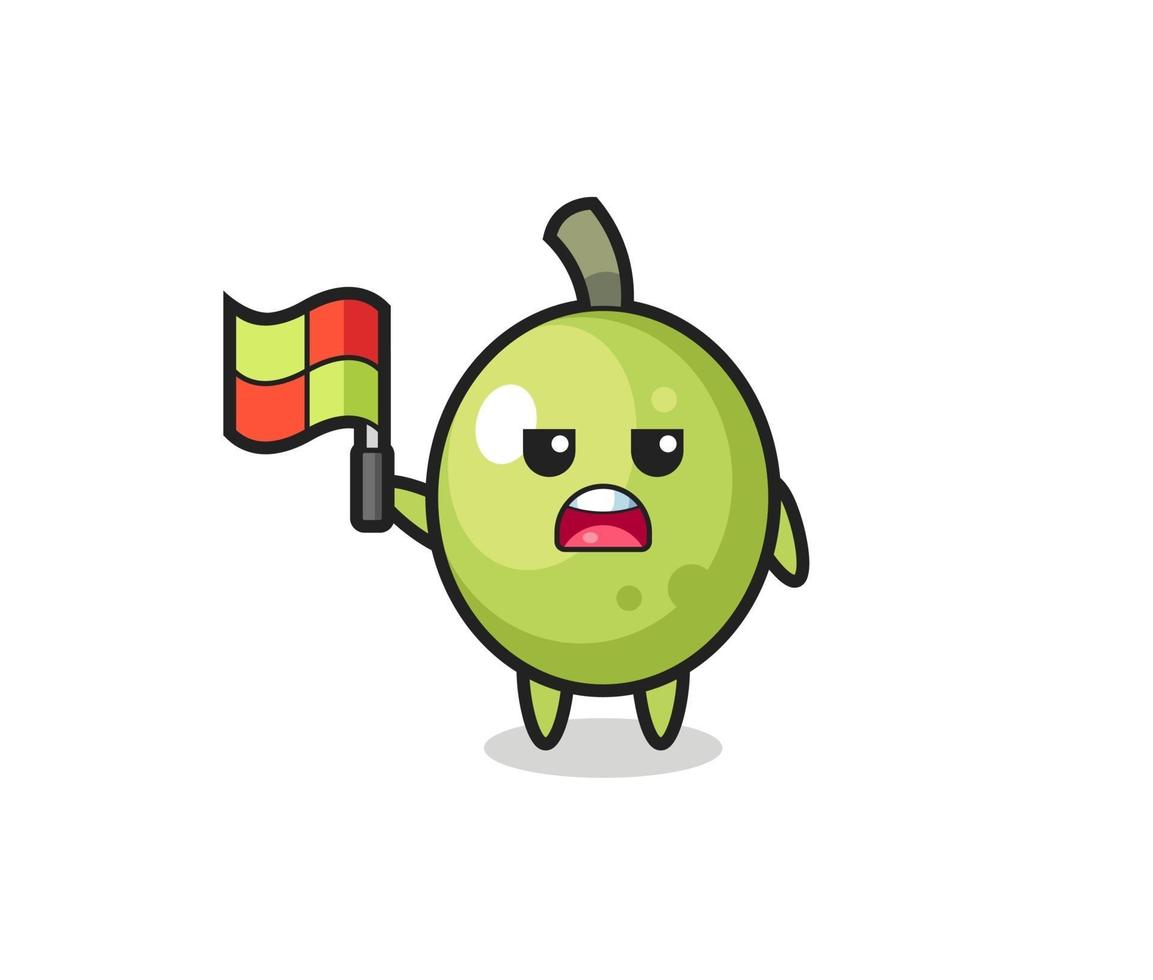 olive character as line judge putting the flag up vector