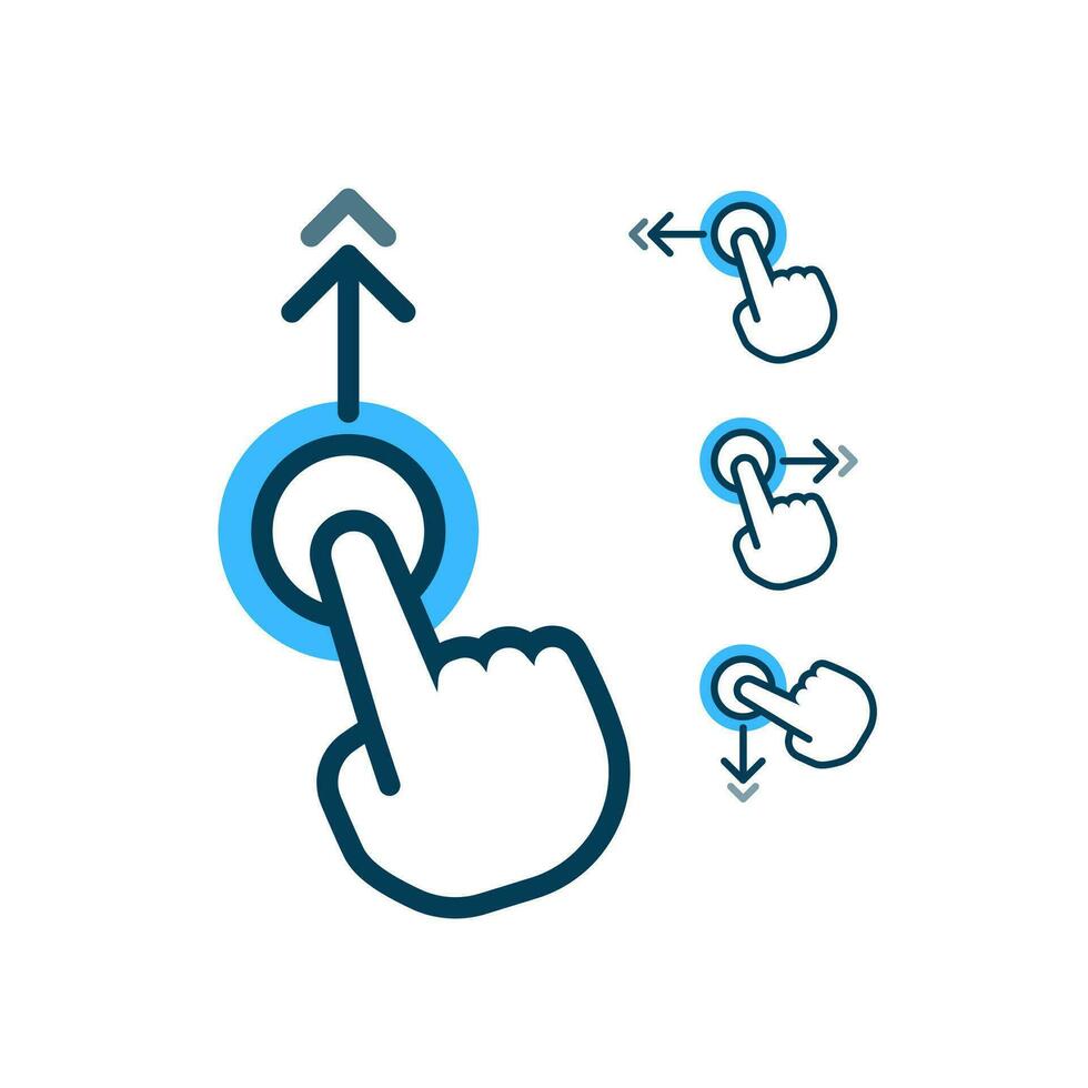 swipe to up, down, right and left screen with finger concept illustration line icon set design. editable vector Pro Vector