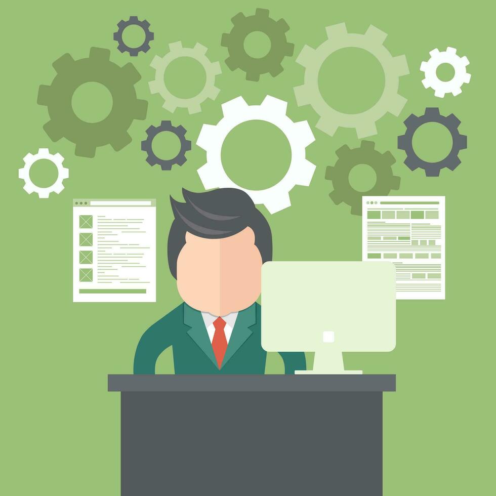 Electronic document processing concept. Programming and coding. Flat vector illustration