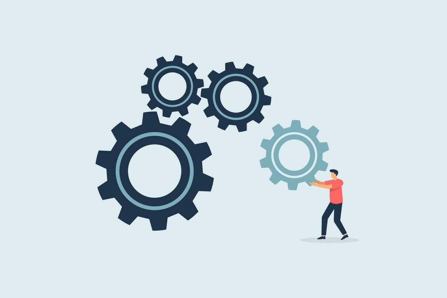Expertise in drafting business strategy concepts. Business concept putting gears so the machine can run. Vector illustration Pro Vector