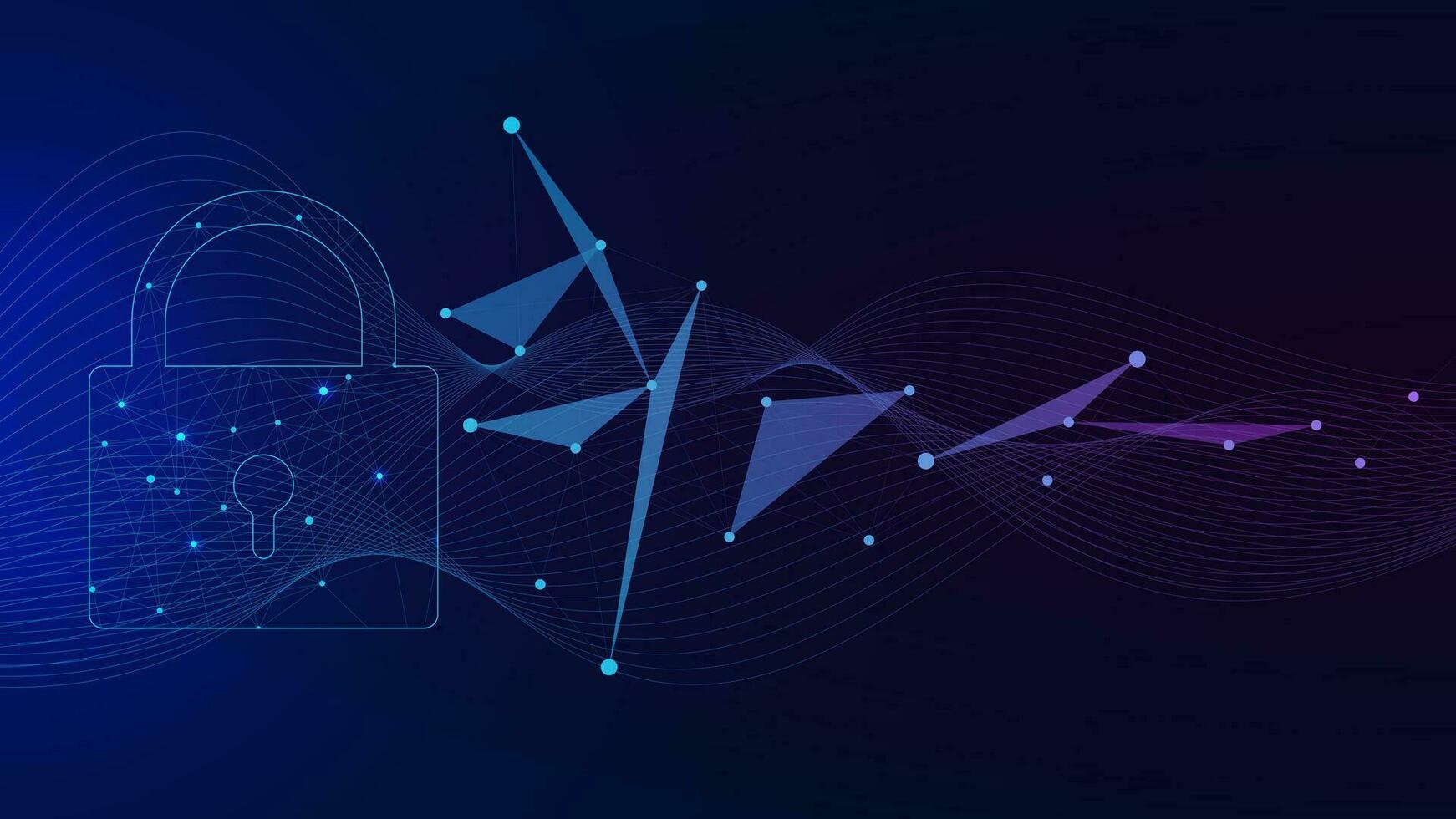 Cyber security technology concept with padlock and plexus on dark blue background. Vector illustration. Pro Vector