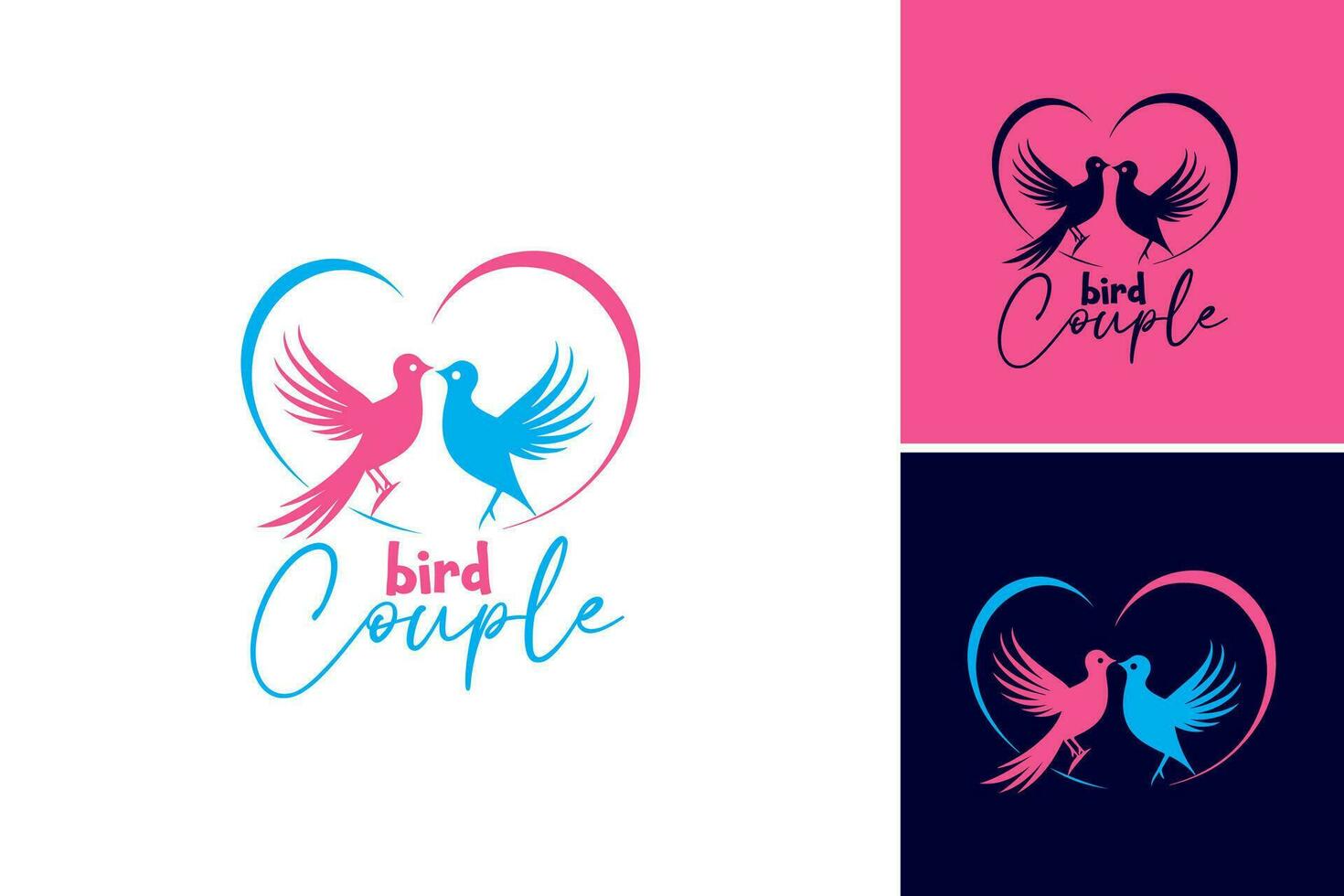 Bird Couple Logo Design Template. is a whimsical and playful design asset featuring a bird made up of the word bird repeated. This asset is suitable for creating fun and eye-catching designs Pro Vector