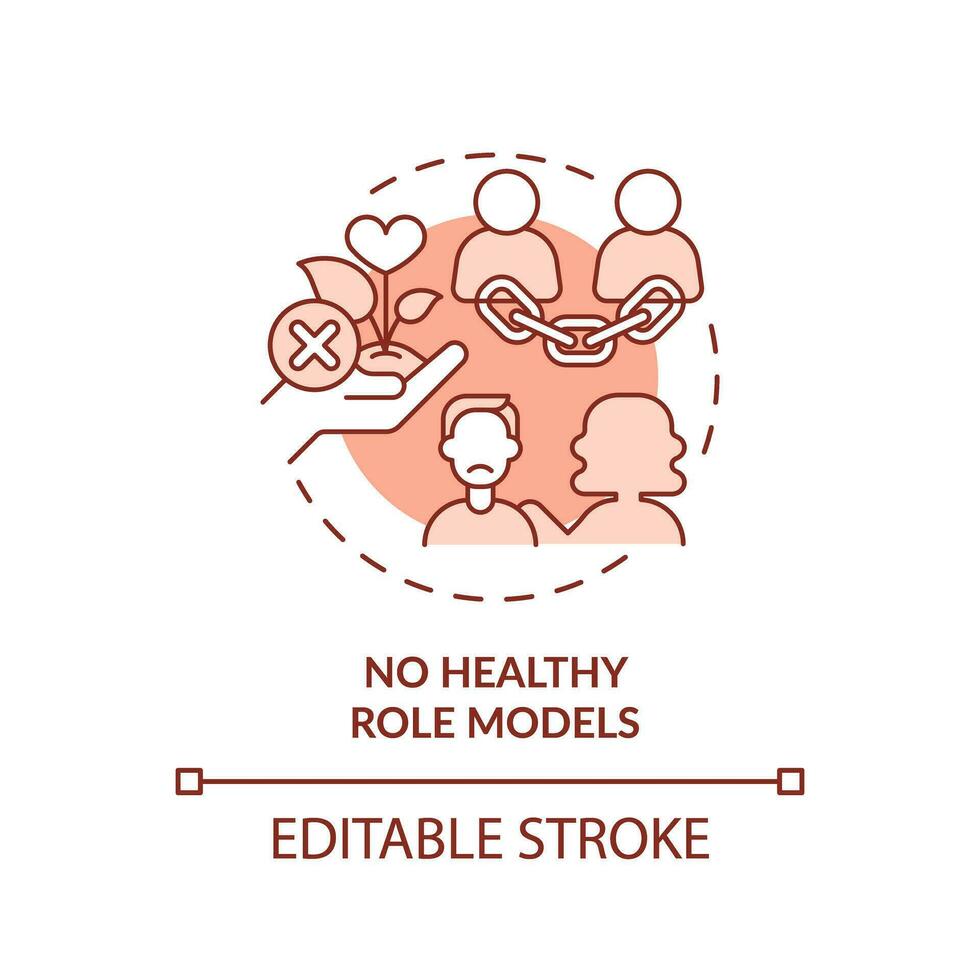 2D editable thin line icon no healthy role models concept, monochromatic isolated vector, red illustration representing codependent relationship. Pro Vector