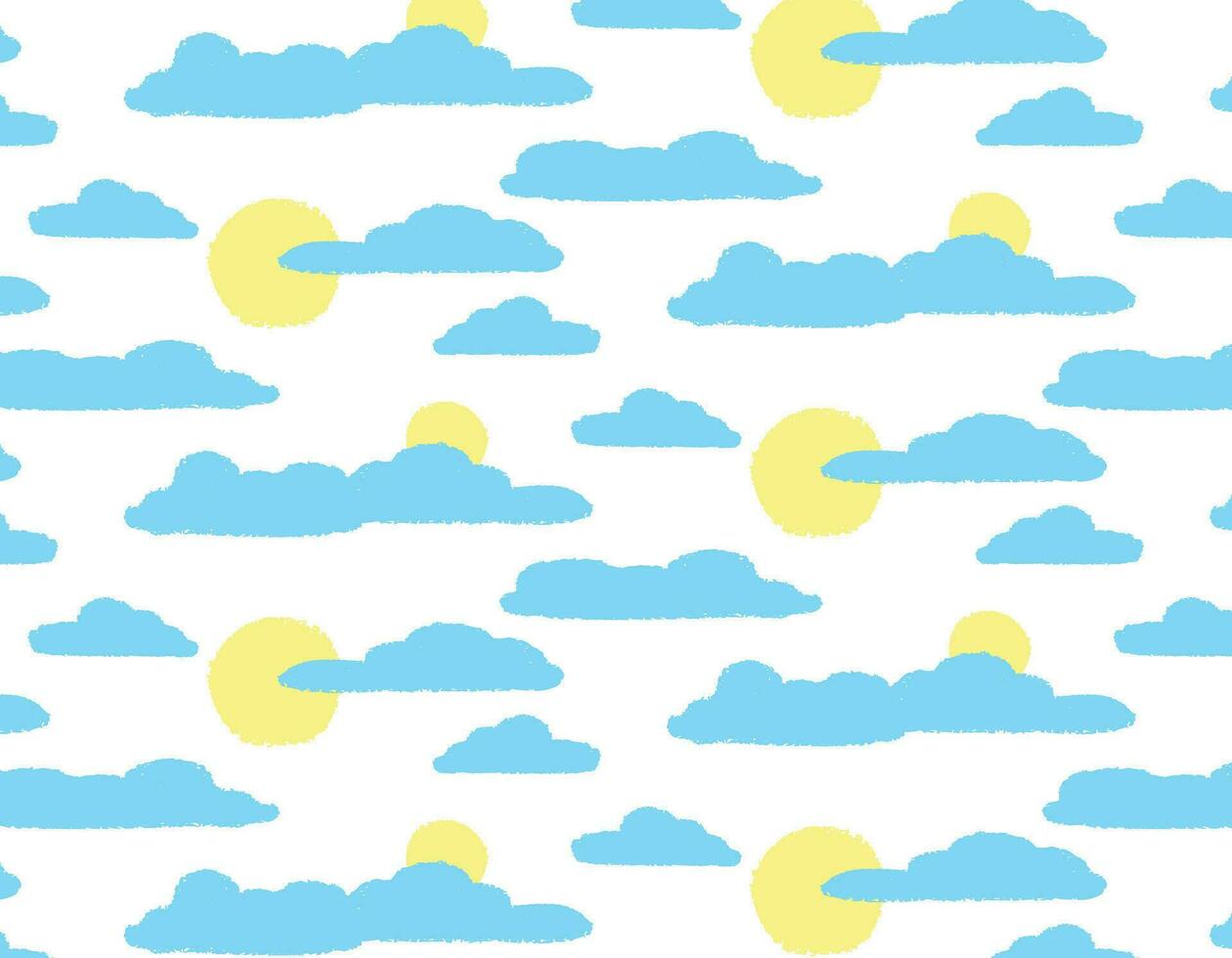 Pattern of clouds and sun on a transparent background, vector drawn in pencil. Design for children, textile print.Seamless pattern Pro Vector