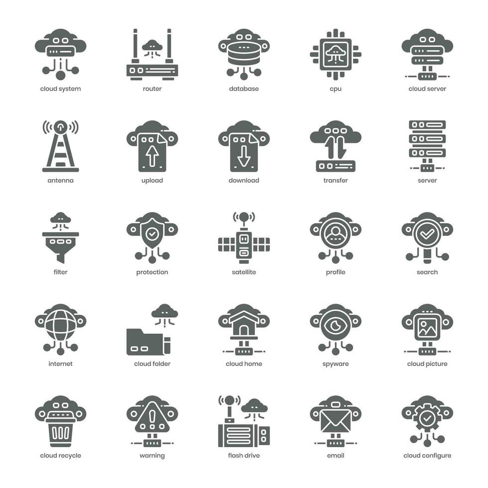 Cloud System icon pack for your website design, logo, app, and user interface. Cloud System icon glyph design. Vector graphics illustration and editable stroke. Pro Vector