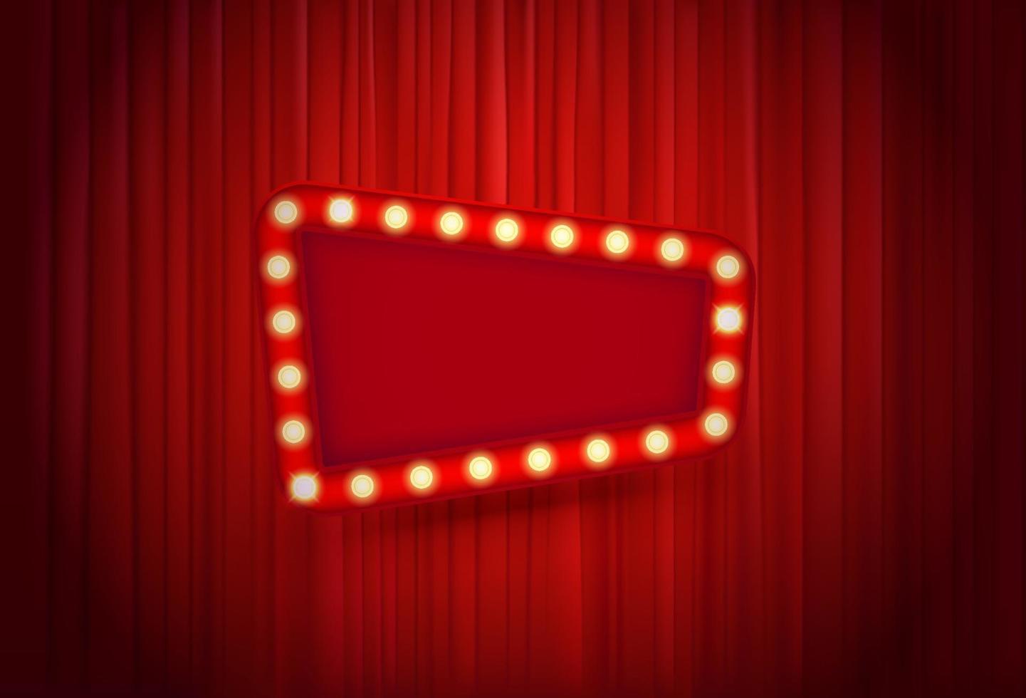 Red curtain and empty illuminated frame. Copy space for a text Pro Vector