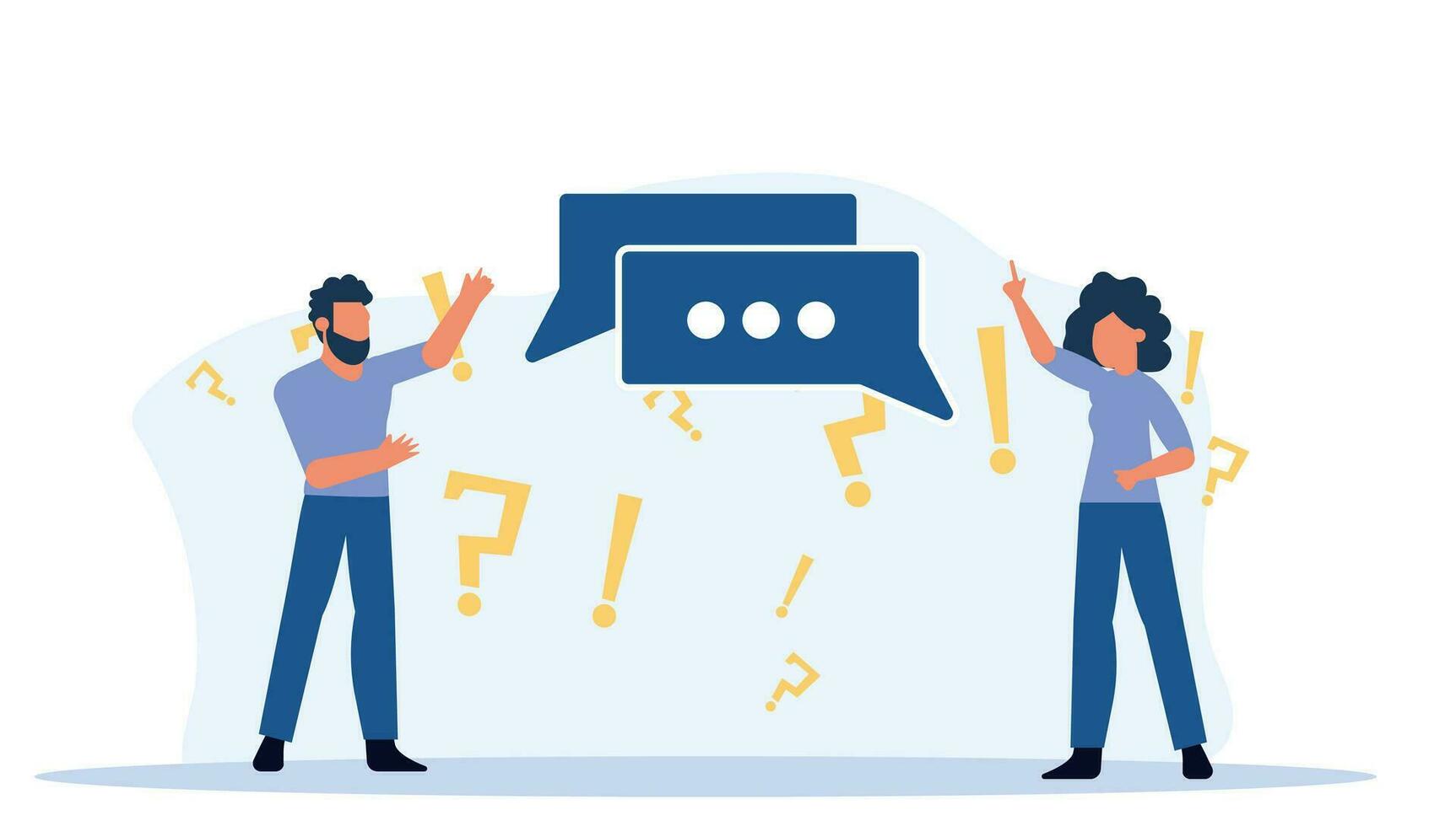 Vector illustration showcases a person with a speech bubble, representing idea that communication is key to effective collaboration and successful business. Highlights the importance of information Pro Vector