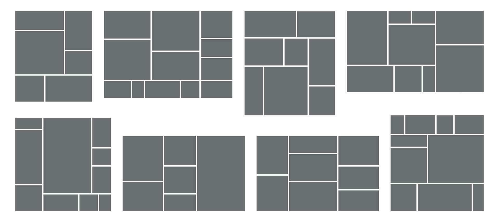Square photo collage. Photos grid template, rectangular frame and pictures composition vector templates set Pro Vector