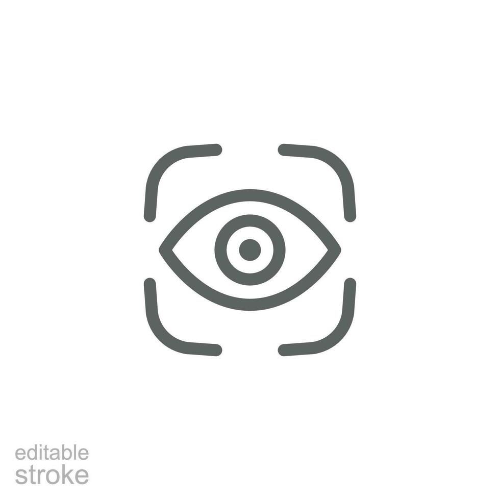 Eye scan icon. Simple outline style. Visual identity, focus, view, vision, future tech, eye with scanning frame, technology concept. Thin line symbol. Vector illustration isolated. Editable stroke. Pro Vector