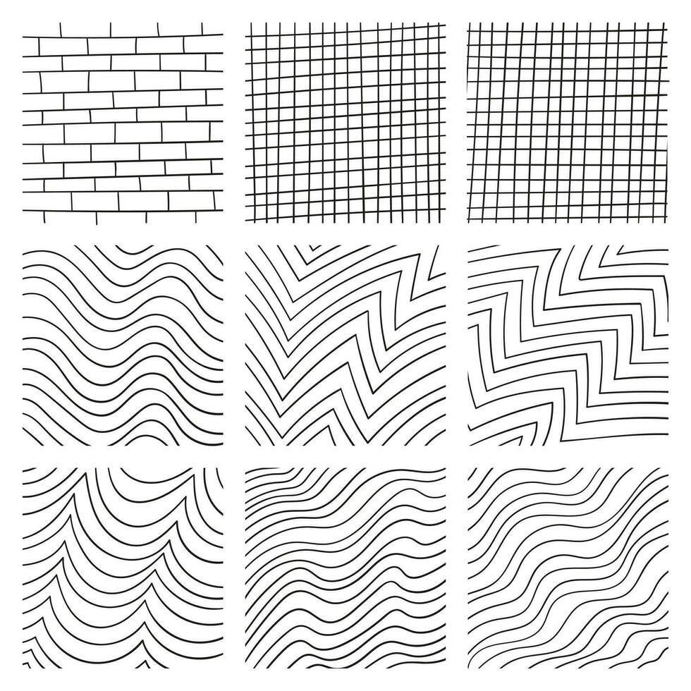 Lines set in different styles. Checkered, bricks, waves in different positions. Pro Vector