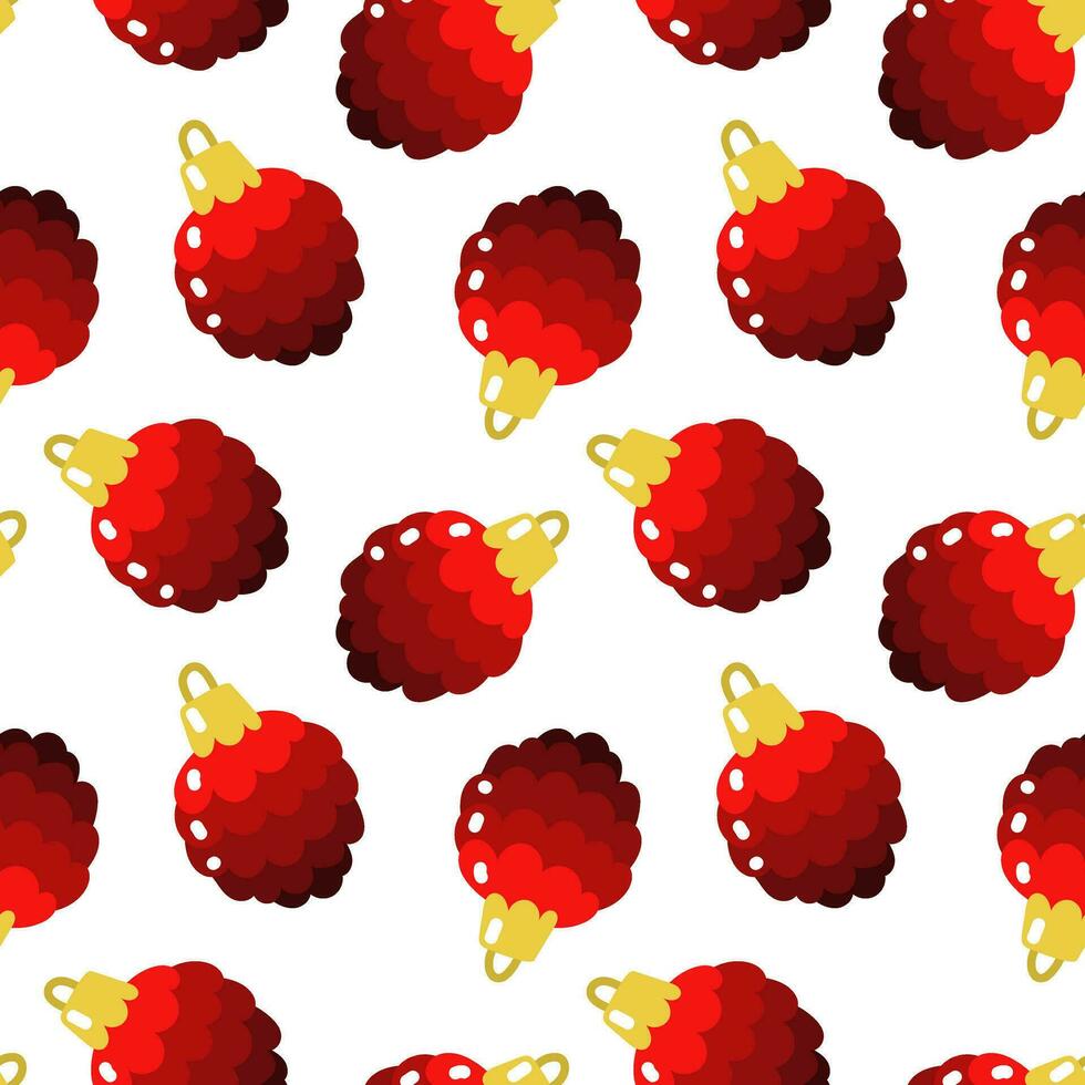 The pattern is a Christmas tree toy in the form of a red cone. Seamless texture with cartoon Christmas tree toy in rotation and endless repetition. Holiday packaging on a white background Pro Vector