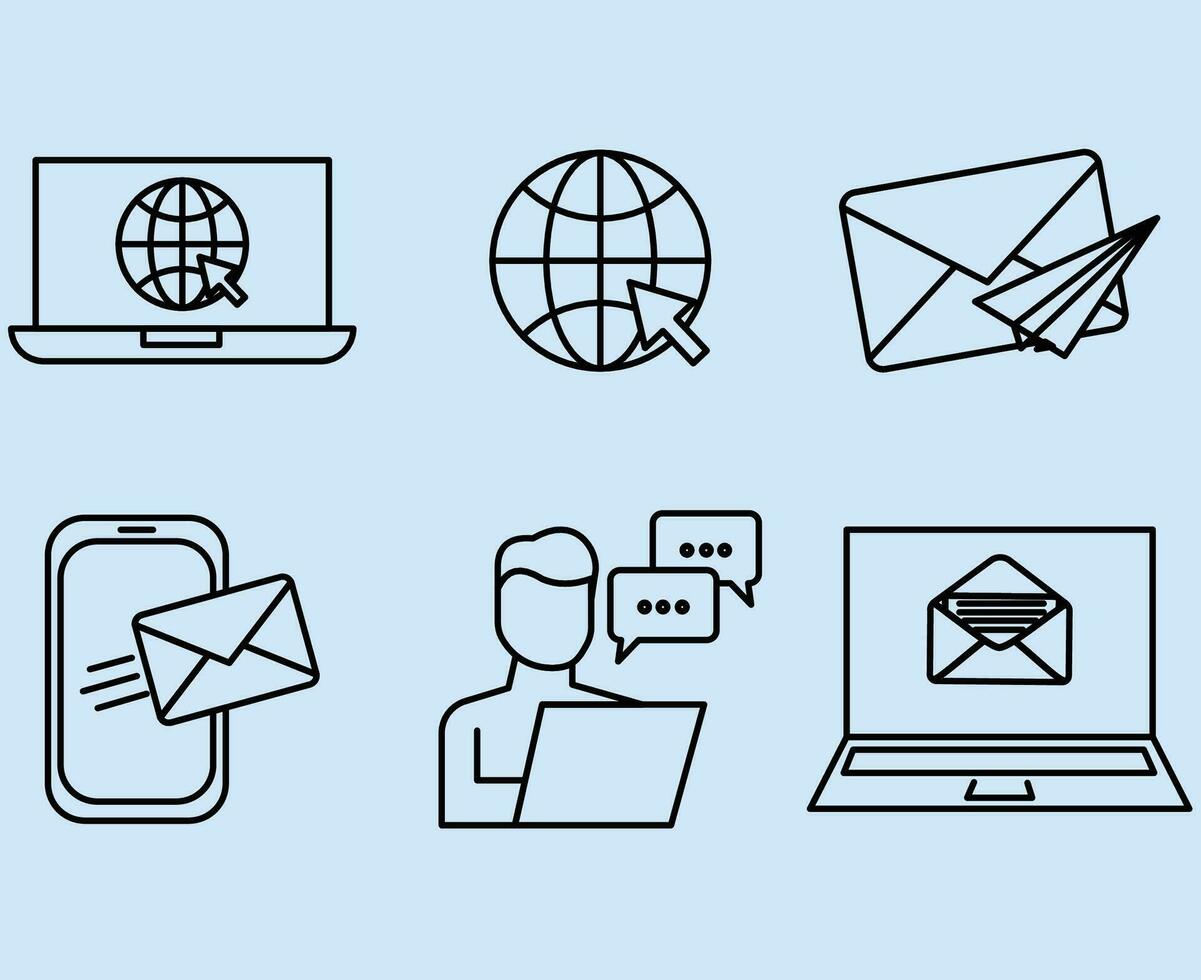 set of mail and internet communication icons web in line style for web and mobile apps Pro Vector