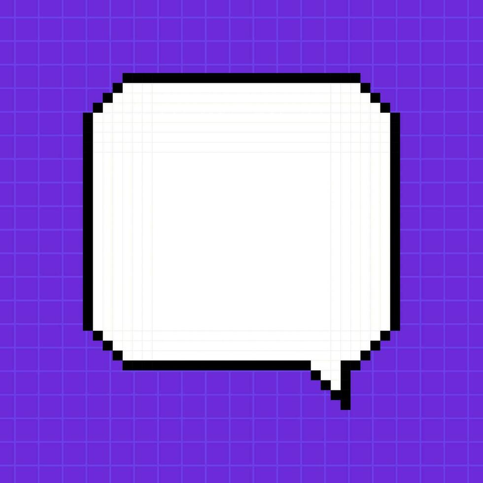 Pixel square dialog box on a bright purple background. Illustration in the style of an 8-bit retro game, controller, cute frame for inscriptions. Pro Vector