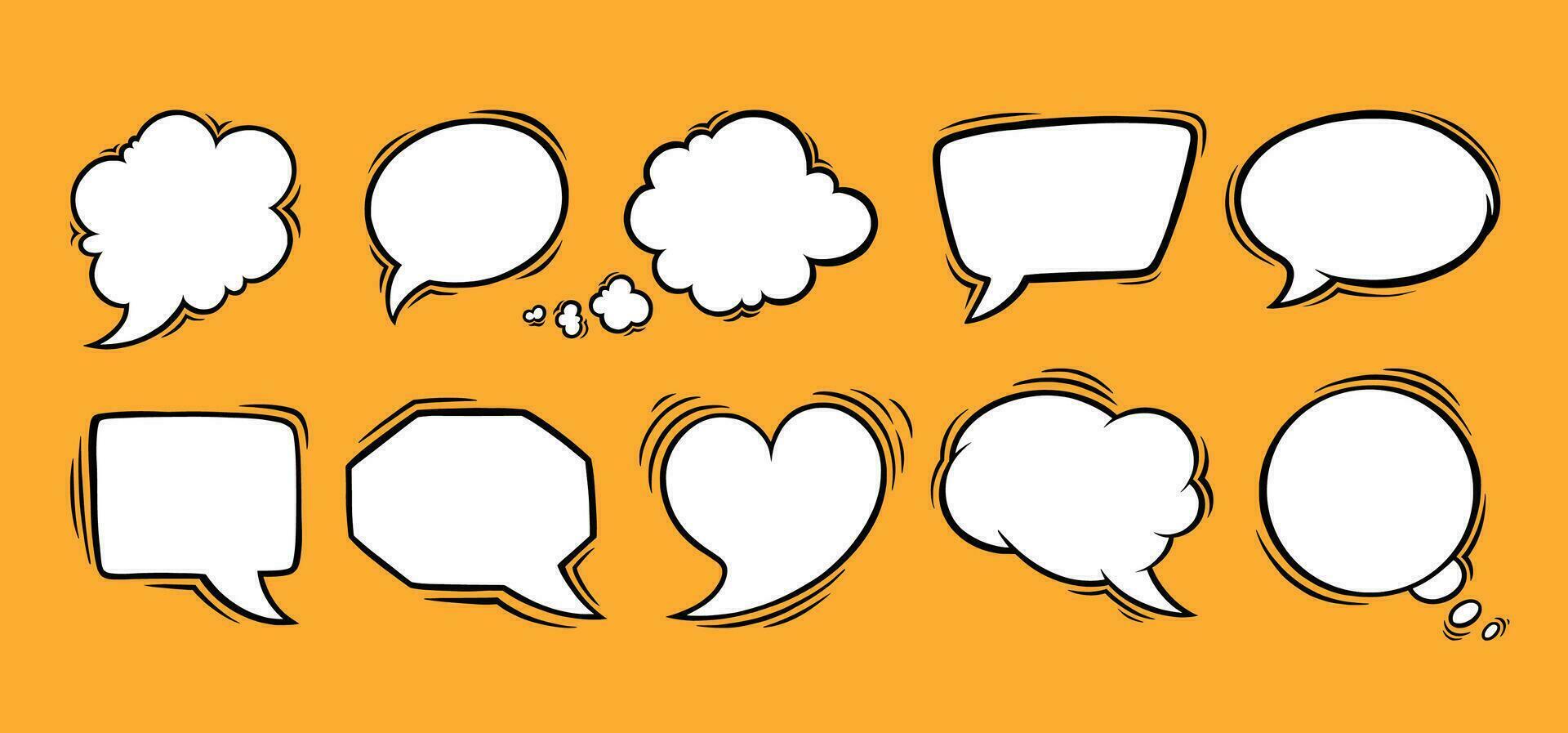 Speech bubbles for text and messages. Set of speech boxes isolated in yellow background. Vector illustration Pro Vector