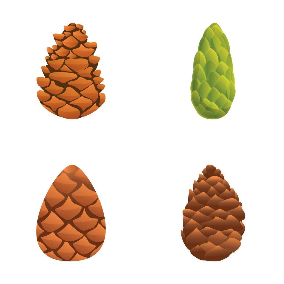 Conifer cone icons set cartoon vector. Various coniferous tree cone Pro Vector