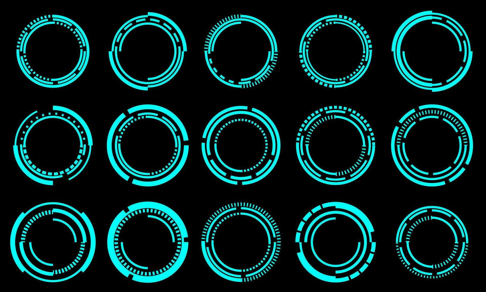 Set of sci fi blue circle user interface elements technology futuristic design modern creative on black background Pro Vector
