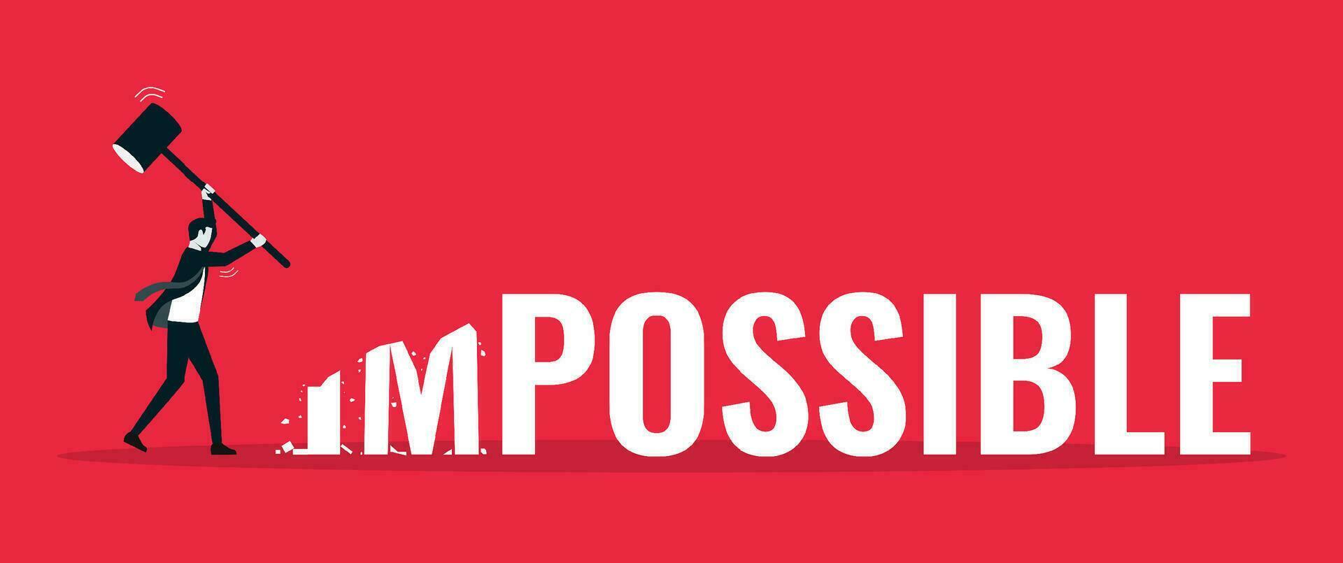 Business man smashed with a hammer to destroy impossible to possible, mindset concept, efficiency at work, successful management Pro Vector