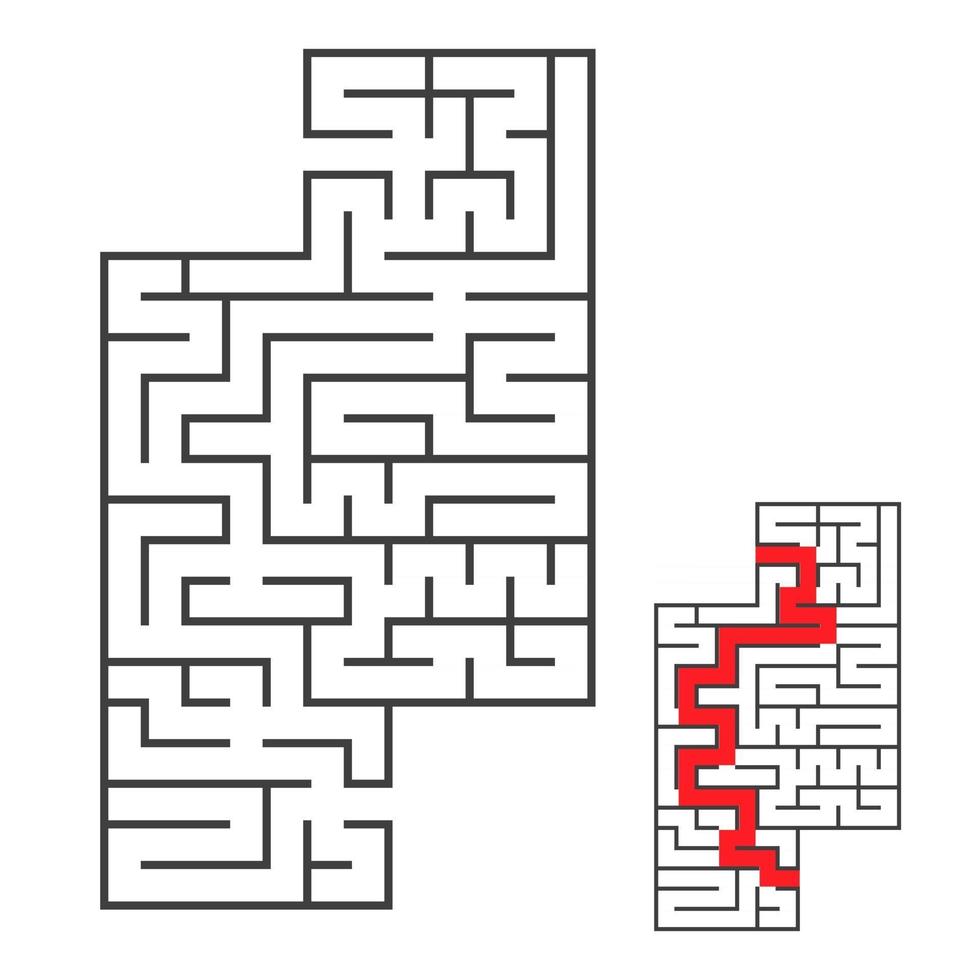Rectangular labyrinth with an input and an exit. Simple flat vector illustration isolated on white background. With the correct answer. Pro Vector