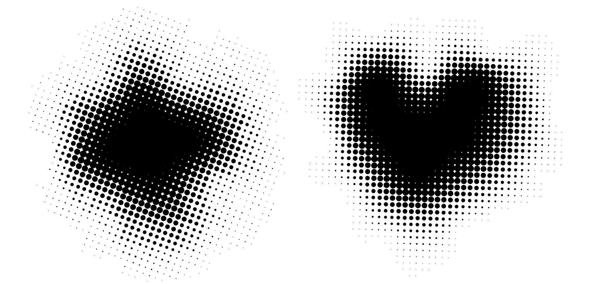 Abstract halftone shape. Dotted circles geometric gradient and pop art texture. Dots gradient elements. Element heart Pro Vector