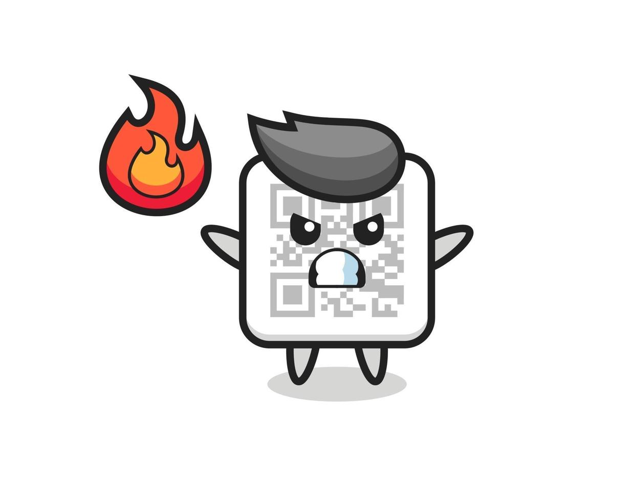 qr code character cartoon with angry gesture Pro Vector