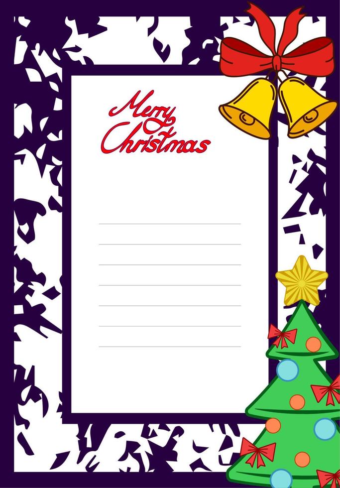 Vector Christmas postcard with bells and Christmas tree. Card for your text, copy space with rows for your congratulations text. Pro Vector