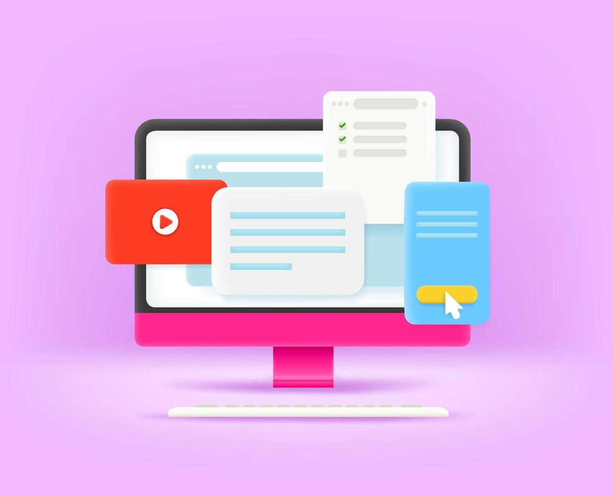 Modern computer with opened browser windows. Internet serfing concept Pro Vector