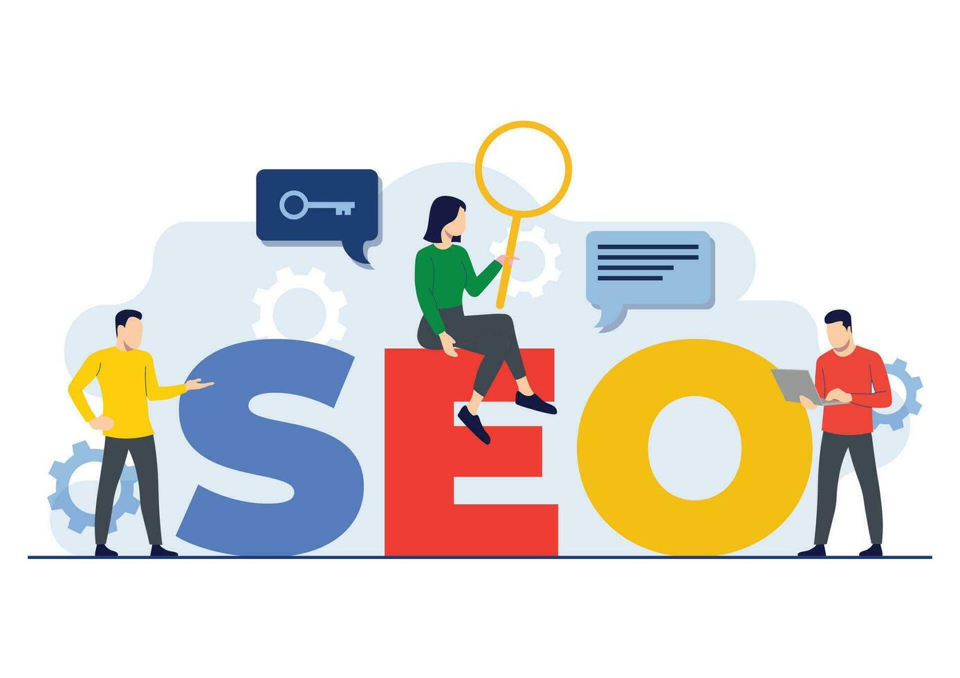 SEO optimization, Search engine optimization, People analysis keywords and optimizing data settings, Performance marketing, analytics and search engine ranking concept Pro Vector